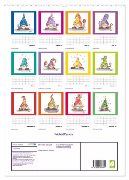 PREMIUM-LINIE - Brillanter Fotokalender mit 12 wunderschönen Motiven, Kunstdruck in Hochglanz in Museumsqualität.QUALITÄT - edle Materialien, stabile Rückwand mit 2 innovativen Einstecktaschen für eine optimale Präsentation an der Wand.NACHHALTIG - deutliche Abfallreduzierung durch bedarfsgerechte Einzelstückfertigung, umweltfreundliches FSC-zertifiziertes Papier, Produktion in Deutschland, klimabewusste Logistik.PERFEKTES GESCHENK - Kalender für Freunde und Familie, für Kinder und Erwachsene, jung und alt, zu Weihnachten, Geburtstag oder zwischendurch.In liebevoller Handarbeit aquarellierte Wichtel bringen fröhlich Farbe in den Tag. von Autor(in): Brit Jandl