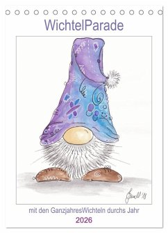 Eine Auswahl von handaquarellierten Wichteln begleitet Sie Monat für Monat durchs ganze Jahr.