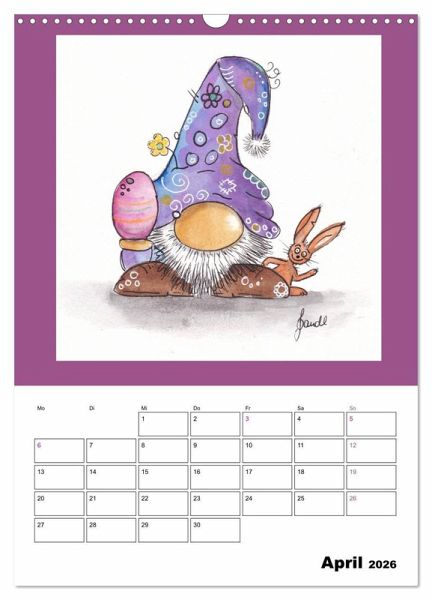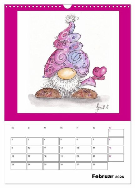 Eine Auswahl von handaquarellierten Wichteln begleitet Sie Monat für Monat durchs ganze Jahr.