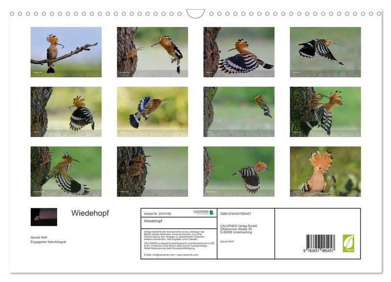QUALITÄT - Hochwertiger Fotokalender mit 12 wunderschönen Motiven auf lichtbeständigem Bilderdruckpapier, robuste Spiralbindung mit Aufhängebügel.NACHHALTIG - deutliche Abfallreduzierung durch bedarfsgerechte Einzelstückfertigung, umweltfreundliches FSC-zertifiziertes Papier, Produktion in Deutschland, klimabewusste Logistik.PERFEKTES GESCHENK - Kalender für Freunde und Familie, für Kinder und Erwachsene, jung und alt, zu Weihnachten, Geburtstag oder zwischendurch.VIELFALT - Bildkalender in verschiedenen Formaten, z.B. DIN A5, DIN A4, DIN A3 sowie DIN A2. Ob Naturmotiv, Gemälde oder Fotos, ideal für ein persönliches Wohlfühlambiente.Faszinierende Aufnahmen aus dem Alltag eines Wiedehopfpaares von Autor(in): Gerald Wolf