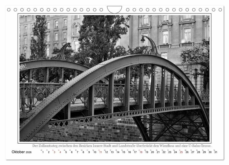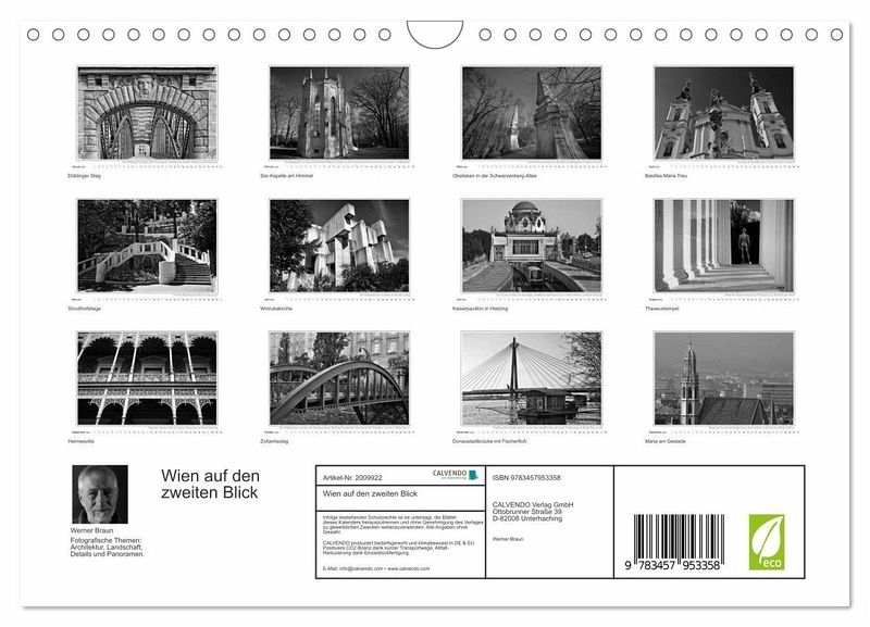 Neben den bekannten Sehenswürdigkeiten bietet die österreichische Hauptstadt Wien viele wenig bekannte, aber dennoch interessante und reizvolle Orte, teils historisch, teils auch aus der jüngeren Vergangenheit stammend. Dieser Kalender zeigt eine repräsentative Auswahl daraus in ausdrucksstarkem Schwarzweiß.