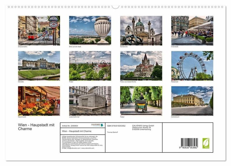 Wien gehört ohne Zweifel zu den schönsten Hauptstädten Europas. Dieser Kalender möchte dem Betrachter den Charme dieser Stadt näher bringen und dazu anregen, vielleicht einmal selbst diesen Ort zu besuchen.