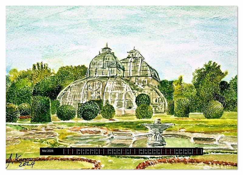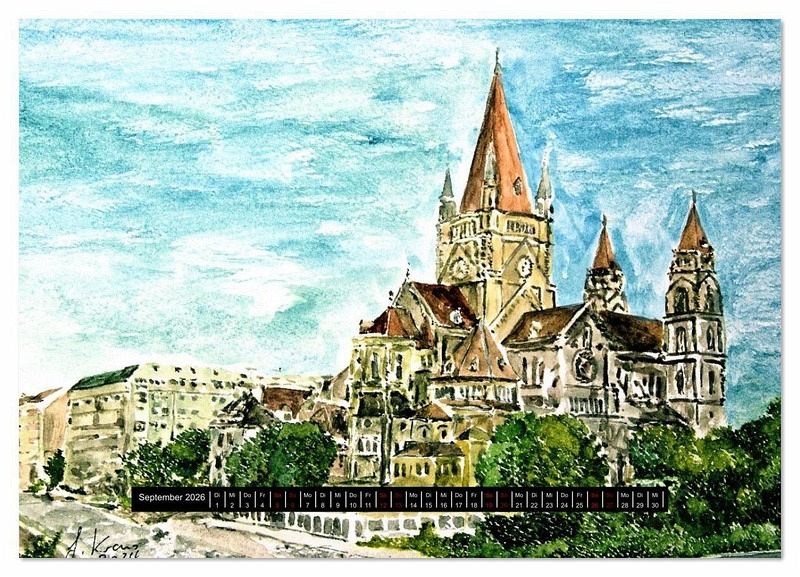 aquarelliert. Aus der Sicht des Künstler Gerhard Kraus zeigt er Wien mit seiner grünen Seele inmitten historischer Bauten.