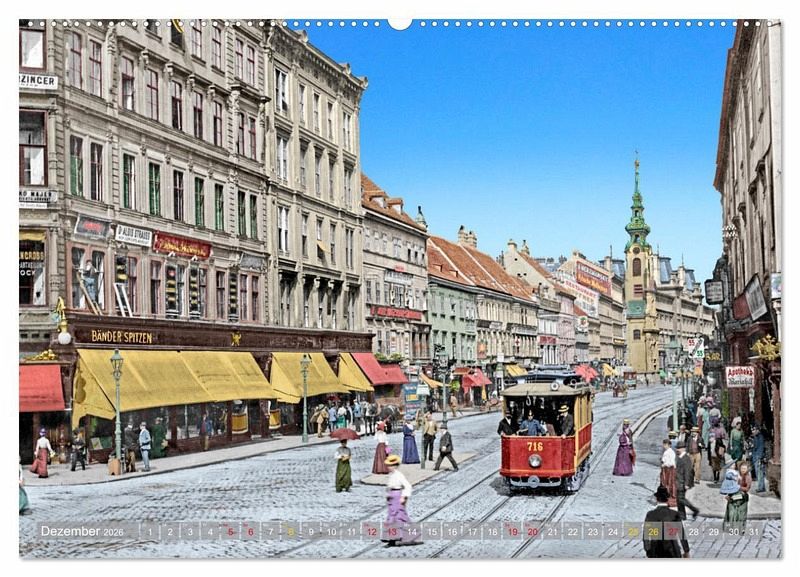 Dezember: Wien - Mariahilferstraße 1908 (Koloration aus Schwarzweißfotografie)