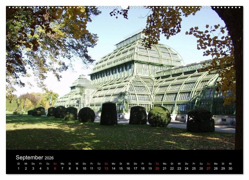 Neben den berühmten Wiener Sehenswürdigkeiten findet man auch besondere Plätze, wie den japanischen Garten in diesem prächtigen Kalender.