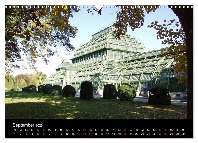 Neben den berühmten Wiener Sehenswürdigkeiten findet man auch besondere Plätze, wie den japanischen Garten in diesem prächtigen Kalender.