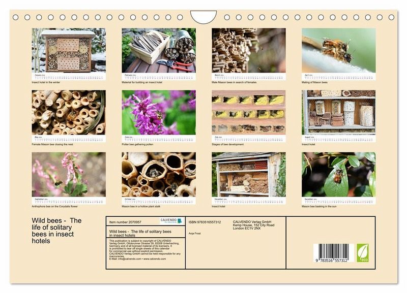 QUALITY - High-quality photo calendar with 12 beautiful images on light-resistant paper, robust spiral binding with hanger.SUSTAINABLE - Significant waste reduction due to print-on-demand production, environmentally friendly FSC-certified paper, produced in the UK, climate-conscious logistical processes.PERFECT GIFT - calendars for friends and family, for children, all ages and all occasions, from Christmas to birthdays and everything in between.LOTS OF CHOICE - Wall calendars in different sizes (DIN A4 and DIN A3), for any topic and personal taste, featuring photography, painting and illustrations.A year at the wild bee hotel, author: Anja Frost