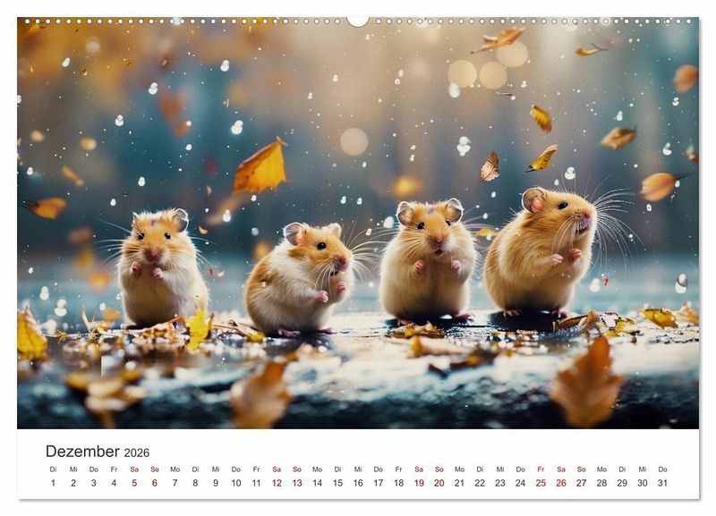 Goldhamster, wie du sie noch nie gesehen hast! Zwischen Gräsern, auf geheimen Pfaden und sogar am Wasser - diese kleinen Entdecker erobern die Natur auf ihre ganz eigene, flauschige Weise. Ein KI -generierter Kalender voller charmanter Wildheit und goldiger Überraschungen!