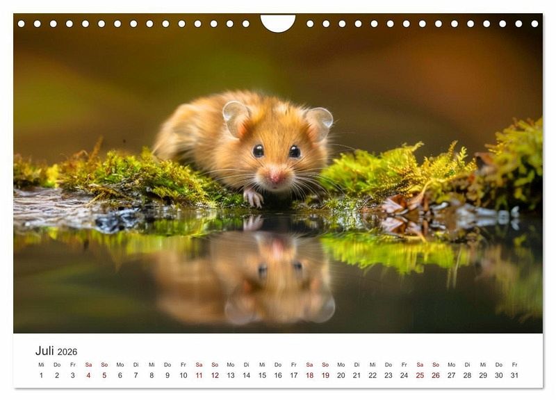 Goldhamster, wie du sie noch nie gesehen hast! Zwischen Gräsern, auf geheimen Pfaden und sogar am Wasser - diese kleinen Entdecker erobern die Natur auf ihre ganz eigene, flauschige Weise. Ein KI -generierter Kalender voller charmanter Wildheit und goldiger Überraschungen!