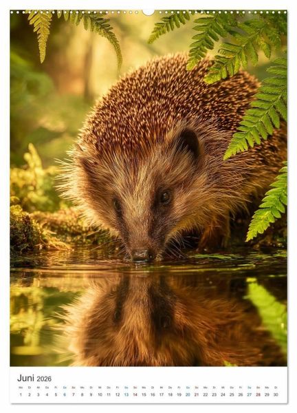 Juni: Der Igel stillt seinen Durst am Spiegel der Natur