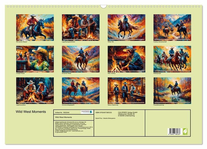 QUALITÄT - Hochwertiger Fotokalender mit 12 wunderschönen Motiven auf lichtbeständigem Bilderdruckpapier, robuste Spiralbindung mit Aufhängebügel.NACHHALTIG - deutliche Abfallreduzierung durch bedarfsgerechte Einzelstückfertigung, umweltfreundliches FSC-zertifiziertes Papier, Produktion in Deutschland, klimabewusste Logistik.PERFEKTES GESCHENK - Kalender für Freunde und Familie, für Kinder und Erwachsene, jung und alt, zu Weihnachten, Geburtstag oder zwischendurch.VIELFALT - Bildkalender in verschiedenen Formaten, z.B. DIN A5, DIN A4, DIN A3 sowie DIN A2. Ob Naturmotiv, Gemälde oder Fotos, ideal für ein persönliches Wohlfühlambiente.Die faszinierende Welt der Cowboys und Cowgirls von Autor(in): Babett's Bildergalerie