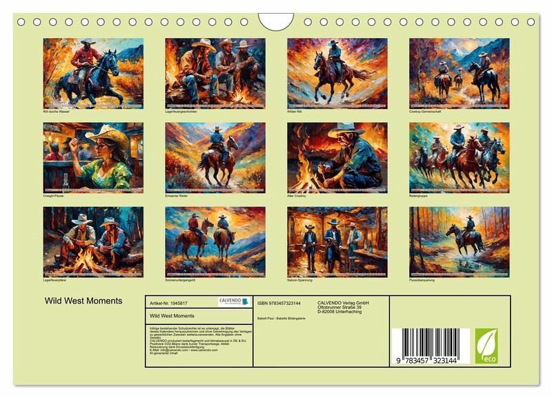 QUALITÄT - Hochwertiger Fotokalender mit 12 wunderschönen Motiven auf lichtbeständigem Bilderdruckpapier, robuste Spiralbindung mit Aufhängebügel.NACHHALTIG - deutliche Abfallreduzierung durch bedarfsgerechte Einzelstückfertigung, umweltfreundliches FSC-zertifiziertes Papier, Produktion in Deutschland, klimabewusste Logistik.PERFEKTES GESCHENK - Kalender für Freunde und Familie, für Kinder und Erwachsene, jung und alt, zu Weihnachten, Geburtstag oder zwischendurch.VIELFALT - Bildkalender in verschiedenen Formaten, z.B. DIN A5, DIN A4, DIN A3 sowie DIN A2. Ob Naturmotiv, Gemälde oder Fotos, ideal für ein persönliches Wohlfühlambiente.Die faszinierende Welt der Cowboys und Cowgirls von Autor(in): Babett's Bildergalerie