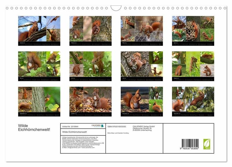 QUALITÄT - Hochwertiger Fotokalender mit 12 wunderschönen Motiven auf lichtbeständigem Bilderdruckpapier, robuste Spiralbindung mit Aufhängebügel.NACHHALTIG - deutliche Abfallreduzierung durch bedarfsgerechte Einzelstückfertigung, umweltfreundliches FSC-zertifiziertes Papier, Produktion in Deutschland, klimabewusste Logistik.PERFEKTES GESCHENK - Kalender für Freunde und Familie, für Kinder und Erwachsene, jung und alt, zu Weihnachten, Geburtstag oder zwischendurch.VIELFALT - Bildkalender in verschiedenen Formaten, z.B. DIN A5, DIN A4, DIN A3 sowie DIN A2. Ob Naturmotiv, Gemälde oder Fotos, ideal für ein persönliches Wohlfühlambiente.Ungewöhnliche Einblicke in das wilde Leben der Eichhörnchen. von Autor(in): Birte Alber