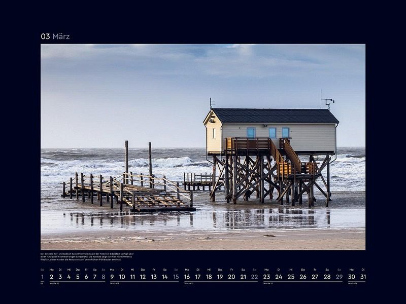 Mit zwölf herausragenden Fotografien schmückt dieser opulente, großformatige KUNTH Wandkalender "Wilde Nordsee" für 2026 in edlem Design jedes Zimmer - egal ob im Büro, im Home Office oder in Wohnräumen.