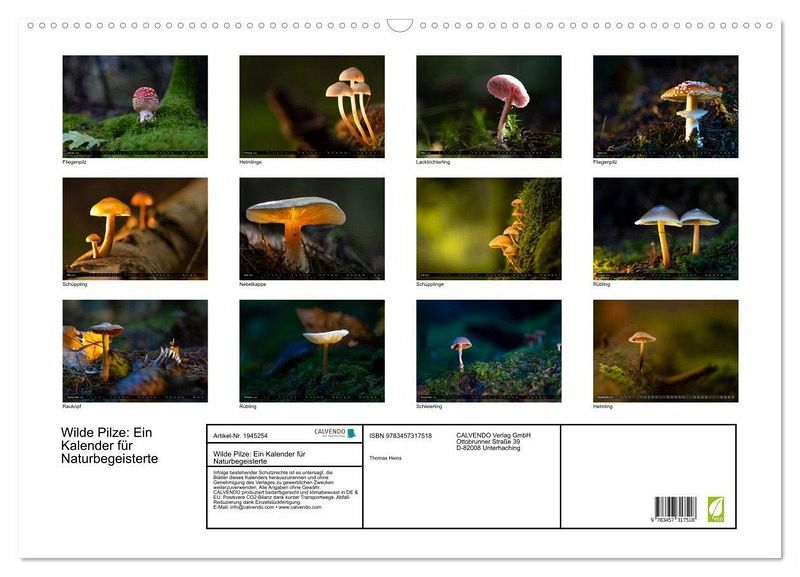 QUALITÄT - Hochwertiger Fotokalender mit 12 wunderschönen Motiven auf lichtbeständigem Bilderdruckpapier, robuste Spiralbindung mit Aufhängebügel.NACHHALTIG - deutliche Abfallreduzierung durch bedarfsgerechte Einzelstückfertigung, umweltfreundliches FSC-zertifiziertes Papier, Produktion in Deutschland, klimabewusste Logistik.PERFEKTES GESCHENK - Kalender für Freunde und Familie, für Kinder und Erwachsene, jung und alt, zu Weihnachten, Geburtstag oder zwischendurch.VIELFALT - Bildkalender in verschiedenen Formaten, z.B. DIN A5, DIN A4, DIN A3 sowie DIN A2. Ob Naturmotiv, Gemälde oder Fotos, ideal für ein persönliches Wohlfühlambiente.Heimische Pilze ansprechend fotografiert von Autor(in): th_norge