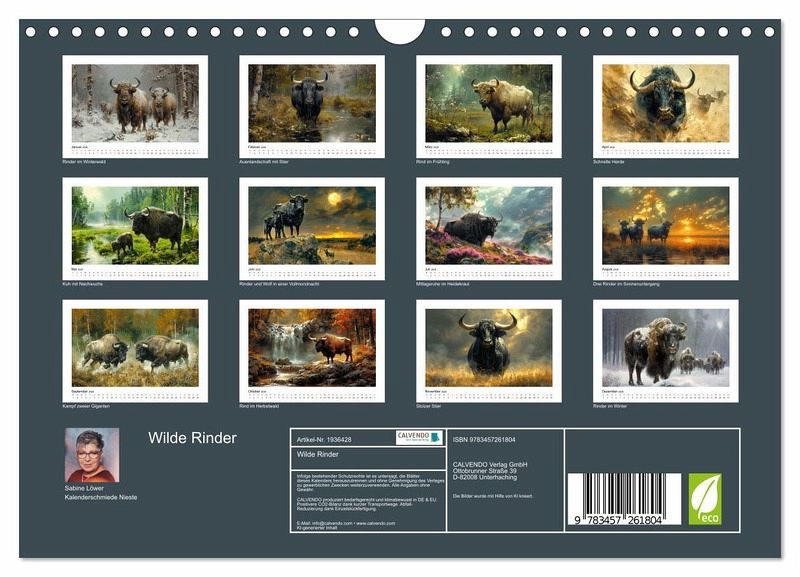 Erlebe die majestätische Schönheit urwüchsiger Rinder zu jeder Jahreszeit mit diesem einzigartigen Kalender! Jede Seite zeigt atemberaubende KI-generierte Bilder von Rindern in malerischen Landschaften. Tauche ein in die Natur und genieße die kraftvolle Präsenz dieser Tiere in verschiedenen Umgebungen. Ein perfekter Kalender für Natur- und Tierliebhaber.