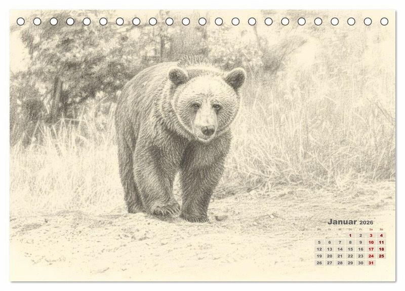 Dieser Kalender präsentiert zwölf sorgfältig ausgewählte Graphitzeichnungen von Tierportraits, die die einzigartige Schönheit und den Charakter verschiedener Wildtiere einfangen. Jedes Blatt ist ein Beweis für die Kraft des Graphits, Licht und Schatten zu nutzen, um tiefe Emotionen und eine fast schon fotorealistische Präsenz zu schaffen. Ein Muss für alle Kunst- und Tierliebhaber.