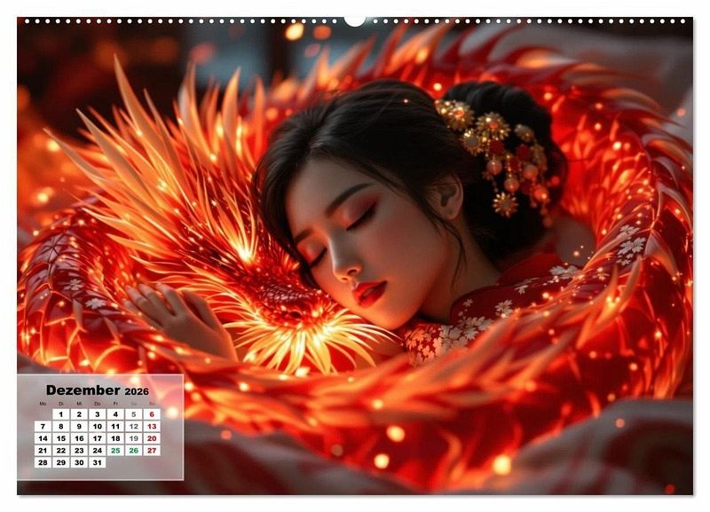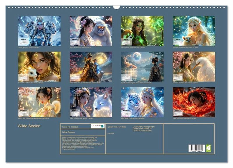 Tauche ein in eine Welt voller Magie und Fantasie! "Wilde Seelen" verbindet atemberaubende asiatische Schönheiten mit mystischen, wilden Tieren - von Schneetiger, Silberaffe bis Drache und Koi. Jede Bildkomposition lädt zum Träumen ein und öffnet das Tor zu fernöstlichen Legenden und visionären Naturwelten. Die Motive wurden KI-generiert und begeistern durch ihre Tiefe, Farbenpracht und die geheimnisvolle Harmonie zwischen Mensch und Tier. Lass dich von jedem einzelnen Blatt inspirieren und entdecke Monat für Monat eine neue Geschichte der Stärke, Wildheit und Sanftmut. Ein exklusives Kunstprojekt, das Freude und Staunen bringt - ideal für Liebhaber außergewöhnlicher Illustrationen und fernöstlicher Märchen.