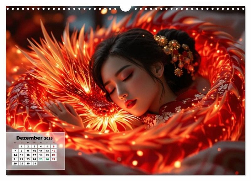 Tauche ein in eine Welt voller Magie und Fantasie! "Wilde Seelen" verbindet atemberaubende asiatische Schönheiten mit mystischen, wilden Tieren - von Schneetiger, Silberaffe bis Drache und Koi. Jede Bildkomposition lädt zum Träumen ein und öffnet das Tor zu fernöstlichen Legenden und visionären Naturwelten. Die Motive wurden KI-generiert und begeistern durch ihre Tiefe, Farbenpracht und die geheimnisvolle Harmonie zwischen Mensch und Tier. Lass dich von jedem einzelnen Blatt inspirieren und entdecke Monat für Monat eine neue Geschichte der Stärke, Wildheit und Sanftmut. Ein exklusives Kunstprojekt, das Freude und Staunen bringt - ideal für Liebhaber außergewöhnlicher Illustrationen und fernöstlicher Märchen.