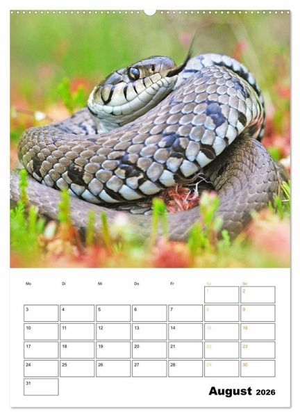 August: Ringelnatter (Natrix natrix), für Menschen völlig ungefährlich, lebt sie in der Nähe von Gewässern und jagt Amphibien