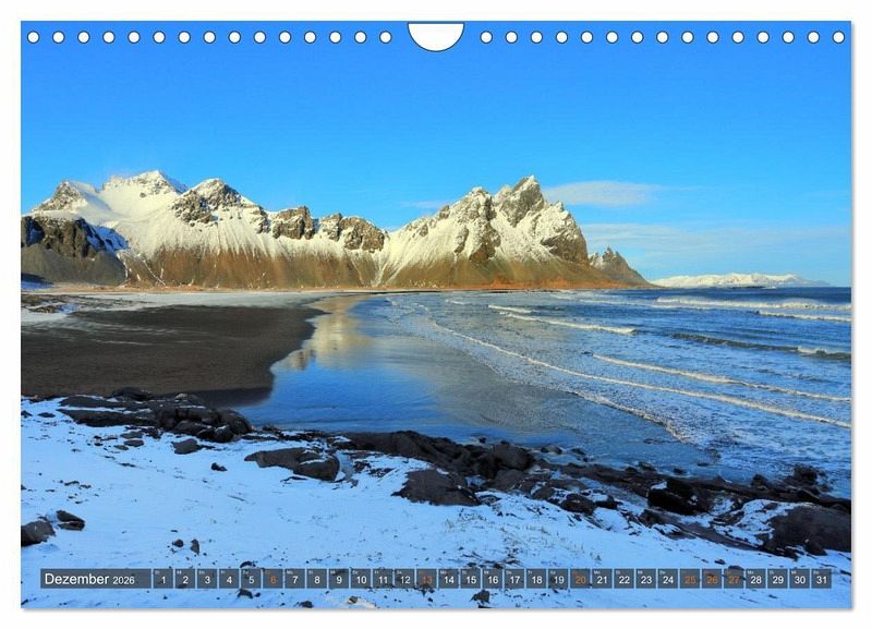 Dezember: Schwarzer Sandstrand, Vestrahorn, Stokksnes, Ost-Island