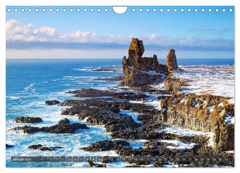 Januar: Londrangar Basaltklippen, Snaefellsnes, West-Island
