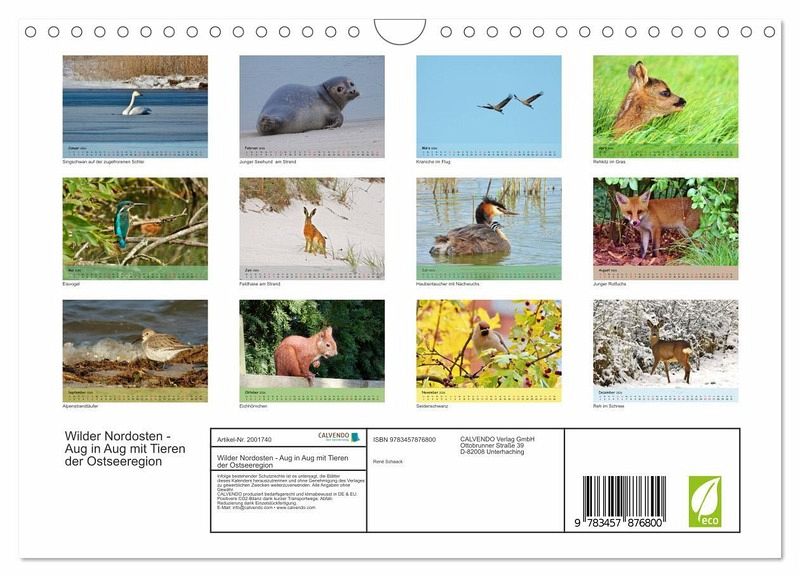 QUALITÄT - Hochwertiger Fotokalender mit 12 wunderschönen Motiven auf lichtbeständigem Bilderdruckpapier, robuste Spiralbindung mit Aufhängebügel.NACHHALTIG - deutliche Abfallreduzierung durch bedarfsgerechte Einzelstückfertigung, umweltfreundliches FSC-zertifiziertes Papier, Produktion in Deutschland, klimabewusste Logistik.PERFEKTES GESCHENK - Kalender für Freunde und Familie, für Kinder und Erwachsene, jung und alt, zu Weihnachten, Geburtstag oder zwischendurch.VIELFALT - Bildkalender in verschiedenen Formaten, z.B. DIN A5, DIN A4, DIN A3 sowie DIN A2. Ob Naturmotiv, Gemälde oder Fotos, ideal für ein persönliches Wohlfühlambiente.Tiere und Vögel an der Ostseeküste von Autor(in): René Schaack