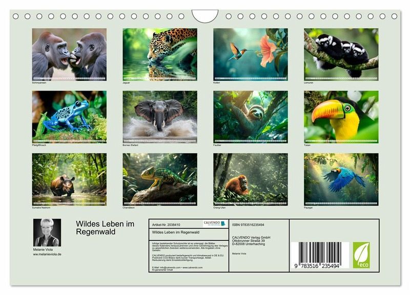 QUALITÄT - Hochwertiger Fotokalender mit 12 wunderschönen Motiven auf lichtbeständigem Bilderdruckpapier, robuste Spiralbindung mit Aufhängebügel.NACHHALTIG - deutliche Abfallreduzierung durch bedarfsgerechte Einzelstückfertigung, umweltfreundliches FSC-zertifiziertes Papier, Produktion in Deutschland, klimabewusste Logistik.PERFEKTES GESCHENK - Kalender für Freunde und Familie, für Kinder und Erwachsene, jung und alt, zu Weihnachten, Geburtstag oder zwischendurch.VIELFALT - Bildkalender in verschiedenen Formaten, z.B. DIN A5, DIN A4, DIN A3 sowie DIN A2. Ob Naturmotiv, Gemälde oder Fotos, ideal für ein persönliches Wohlfühlambiente.Magie des tropischen Urwalds von Autor(in): Melanie Viola