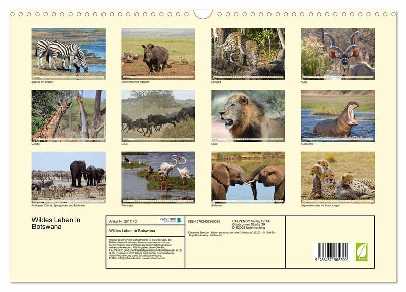 QUALITÄT - Hochwertiger Fotokalender mit 12 wunderschönen Motiven auf lichtbeständigem Bilderdruckpapier, robuste Spiralbindung mit Aufhängebügel.NACHHALTIG - deutliche Abfallreduzierung durch bedarfsgerechte Einzelstückfertigung, umweltfreundliches FSC-zertifiziertes Papier, Produktion in Deutschland, klimabewusste Logistik.PERFEKTES GESCHENK - Kalender für Freunde und Familie, für Kinder und Erwachsene, jung und alt, zu Weihnachten, Geburtstag oder zwischendurch.VIELFALT - Bildkalender in verschiedenen Formaten, z.B. DIN A5, DIN A4, DIN A3 sowie DIN A2. Ob Naturmotiv, Gemälde oder Fotos, ideal für ein persönliches Wohlfühlambiente.Im Reich der wildlebenden Tiere Afrikas von Autor(in): Elisabeth Stanzer
