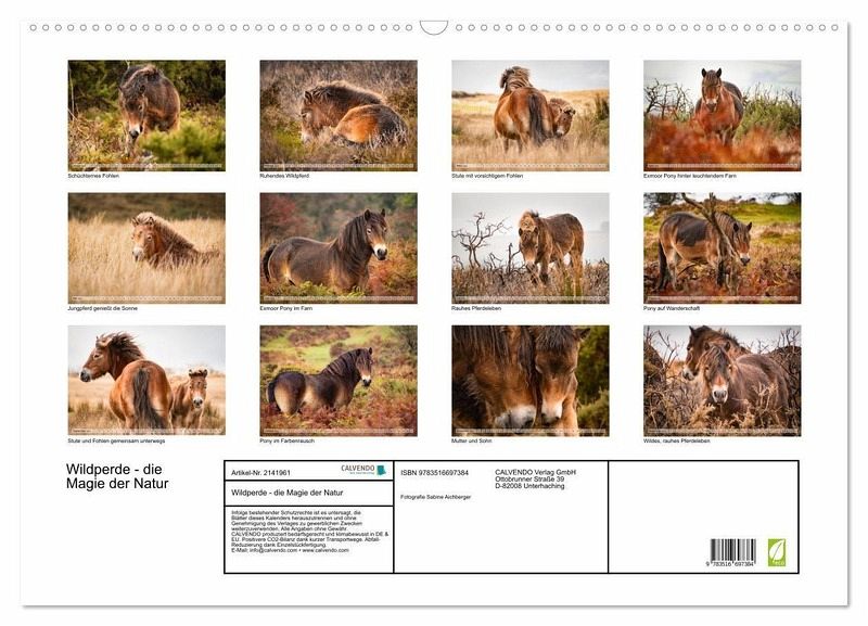 QUALITÄT - Hochwertiger Fotokalender mit 12 wunderschönen Motiven auf lichtbeständigem Bilderdruckpapier, robuste Spiralbindung mit Aufhängebügel.NACHHALTIG - deutliche Abfallreduzierung durch bedarfsgerechte Einzelstückfertigung, umweltfreundliches FSC-zertifiziertes Papier, Produktion in Deutschland, klimabewusste Logistik.PERFEKTES GESCHENK - Kalender für Freunde und Familie, für Kinder und Erwachsene, jung und alt, zu Weihnachten, Geburtstag oder zwischendurch.VIELFALT - Bildkalender in verschiedenen Formaten, z.B. DIN A5, DIN A4, DIN A3 sowie DIN A2. Ob Naturmotiv, Gemälde oder Fotos, ideal für ein persönliches Wohlfühlambiente.Magie wilder Pferde von Autor(in): Fotografie Sabine Aichberger