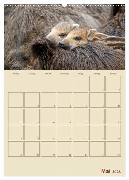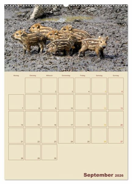 Sie sind die heimlichen Herrscher unserer Wälder - Wildschweine. Doch die meisten von uns kennen die schlauen Borstenviecher meist nur aus Zoos, weil sie im Wald häufig nur Nachts unterwegs sind. Dieser Wandkalender zeigt Ihnen Monat für Monat einen anderen Einblick in das Leben der Schwarzkittel und hat viel Platz für Ihre Termine.