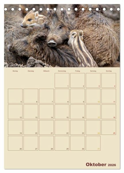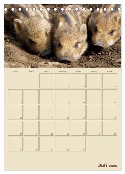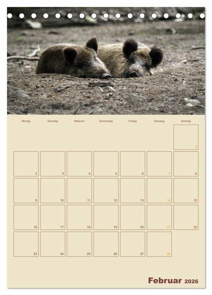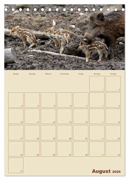 Sie sind die heimlichen Herrscher unserer Wälder - Wildschweine. Doch die meisten von uns kennen die schlauen Borstenviecher meist nur aus Zoos, weil sie im Wald häufig nur Nachts unterwegs sind. Dieser Wandkalender zeigt Ihnen Monat für Monat einen anderen Einblick in das Leben der Schwarzkittel und hat viel Platz für Ihre Termine.