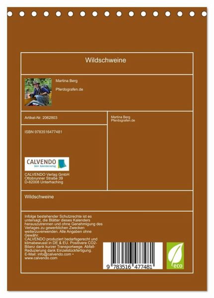 QUALITÄT - Hochwertiger Fotokalender mit 12 wunderschönen Motiven auf lichtbeständigem Bilderdruckpapier, robuste Spiralbindung.NACHHALTIG - deutliche Abfallreduzierung durch bedarfsgerechte Einzelstückfertigung, umweltfreundliches FSC-zertifiziertes Papier, Produktion in Deutschland, klimabewusste Logistik.PERFEKTES GESCHENK - Kalender für Freunde und Familie, für Kinder und Erwachsene, jung und alt, zu Weihnachten, Geburtstag oder zwischendurch.VIELFALT - Bildkalender in verschiedenen Formaten, z.B. DIN A5, DIN A4, DIN A3 sowie DIN A2. Ob Naturmotiv, Gemälde oder Fotos, ideal für ein persönliches Wohlfühlambiente.Terminplaner mit wilden Borstenviechern von Autor(in): Martina Berg