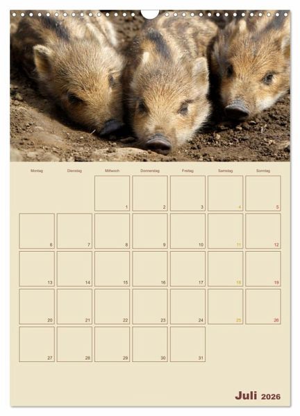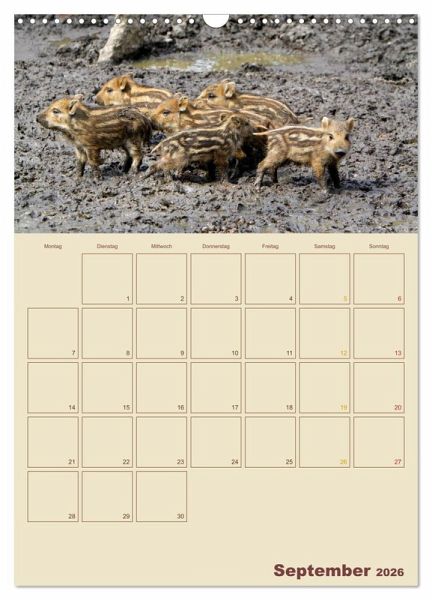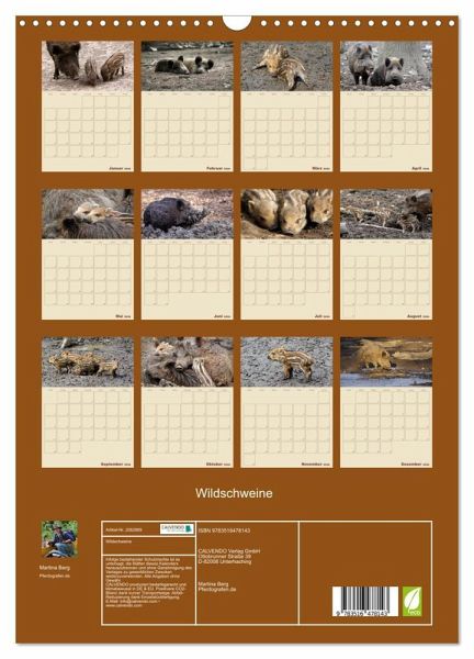 Sie sind die heimlichen Herrscher unserer Wälder - Wildschweine. Doch die meisten von uns kennen die schlauen Borstenviecher meist nur aus Zoos, weil sie im Wald häufig nur Nachts unterwegs sind. Dieser Wandkalender zeigt Ihnen Monat für Monat einen anderen Einblick in das Leben der Schwarzkittel und hat viel Platz für Ihre Termine.