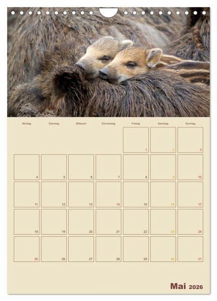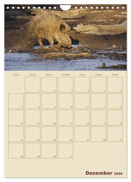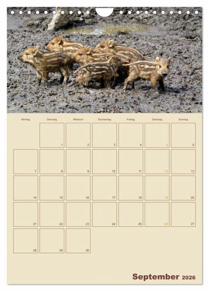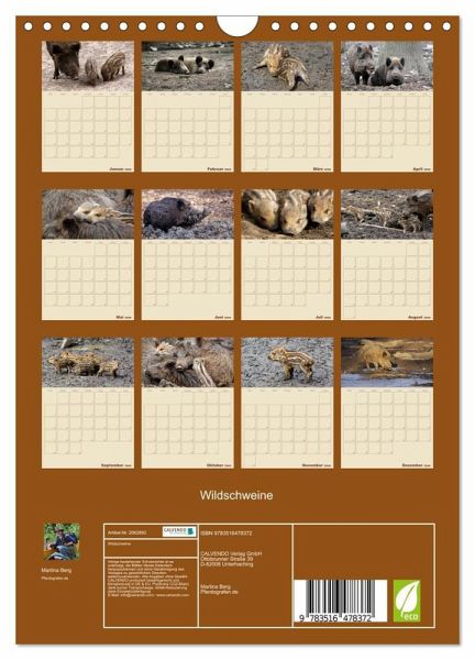 Sie sind die heimlichen Herrscher unserer Wälder - Wildschweine. Doch die meisten von uns kennen die schlauen Borstenviecher meist nur aus Zoos, weil sie im Wald häufig nur Nachts unterwegs sind. Dieser Wandkalender zeigt Ihnen Monat für Monat einen anderen Einblick in das Leben der Schwarzkittel und hat viel Platz für Ihre Termine.