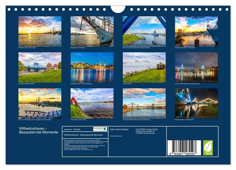 QUALITÄT - Hochwertiger Fotokalender mit 12 wunderschönen Motiven auf lichtbeständigem Bilderdruckpapier, robuste Spiralbindung mit Aufhängebügel.NACHHALTIG - deutliche Abfallreduzierung durch bedarfsgerechte Einzelstückfertigung, umweltfreundliches FSC-zertifiziertes Papier, Produktion in Deutschland, klimabewusste Logistik.PERFEKTES GESCHENK - Kalender für Freunde und Familie, für Kinder und Erwachsene, jung und alt, zu Weihnachten, Geburtstag oder zwischendurch.VIELFALT - Bildkalender in verschiedenen Formaten, z.B. DINA5, DIN A4, DIN A3 sowie DIN A2. Ob Naturmotiv, Gemälde oder Fotos, ideal für ein persönliches Wohlfühlambiente.Malerische Aufnahmen der Marine- und Hafenstadt am Jadebusen von Autor(in): Andrea Dreegmeyer