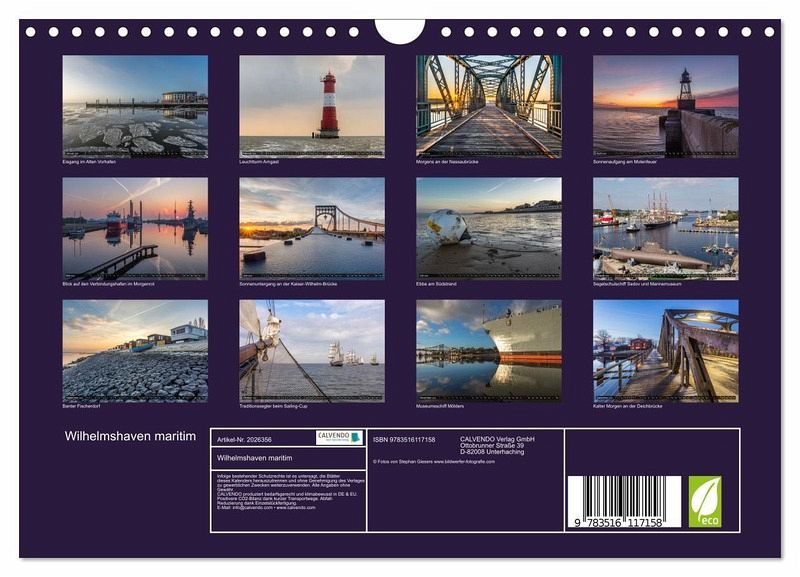 QUALITÄT - Hochwertiger Fotokalender mit 12 wunderschönen Motiven auf lichtbeständigem Bilderdruckpapier, robuste Spiralbindung mit Aufhängebügel.NACHHALTIG - deutliche Abfallreduzierung durch bedarfsgerechte Einzelstückfertigung, umweltfreundliches FSC-zertifiziertes Papier, Produktion in Deutschland, klimabewusste Logistik.PERFEKTES GESCHENK - Kalender für Freunde und Familie, für Kinder und Erwachsene, jung und alt, zu Weihnachten, Geburtstag oder zwischendurch.VIELFALT - Bildkalender in verschiedenen Formaten, z.B. DIN A5, DIN A4, DIN A3 sowie DIN A2. Ob Naturmotiv, Gemälde oder Fotos, ideal für ein persönliches Wohlfühlambiente.Maritime Motive aus der Nordseestadt Wilhelmshaven von Autor(in): Bildwerfer Fotografie