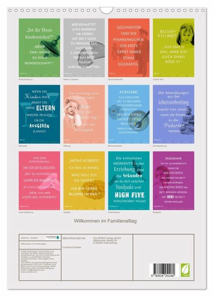 QUALITÄT - Hochwertiger Fotokalender mit 12 wunderschönen Motiven auf lichtbeständigem Bilderdruckpapier, robuste Spiralbindung mit Aufhängebügel.NACHHALTIG - deutliche Abfallreduzierung durch bedarfsgerechte Einzelstückfertigung, umweltfreundliches FSC-zertifiziertes Papier, Produktion in Deutschland, klimabewusste Logistik.PERFEKTES GESCHENK - Kalender für Freunde und Familie, für Kinder und Erwachsene, jung und alt, zu Weihnachten, Geburtstag oder zwischendurch.VIELFALT - Bildkalender in verschiedenen Formaten, z.B. DIN A5, DIN A4, DIN A3 sowie DIN A2. Ob Naturmotiv, Gemälde oder Fotos, ideal für ein persönliches Wohlfühlambiente.Humorvolle Sprüche rund ums Familienleben von Autor(in):Christine Brendle-Behnisch Müller