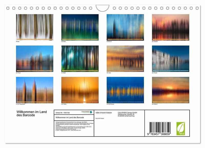 QUALITÄT - Hochwertiger Fotokalender mit 12 wunderschönen Motiven auf lichtbeständigem Bilderdruckpapier, robuste Spiralbindung mit Aufhängebügel.NACHHALTIG - deutliche Abfallreduzierung durch bedarfsgerechte Einzelstückfertigung, umweltfreundliches FSC-zertifiziertes Papier, Produktion in Deutschland, klimabewusste Logistik.PERFEKTES GESCHENK - Kalender für Freunde und Familie, für Kinder und Erwachsene, jung und alt, zu Weihnachten, Geburtstag oder zwischendurch.VIELFALT - Bildkalender in verschiedenen Formaten, z.B. DIN A5, DIN A4, DIN A3 sowie DIN A2. Ob Naturmotiv, Gemälde oder Fotos, ideal für ein persönliches Wohlfühlambiente.Barcodes findet man überall in der Landschaft, wenn man einmal seinen Blick dafür sensibilisiert hat. Dieser Kalender zeigt 13 Beispiele. von Autor(in): Reinhold Ratzer