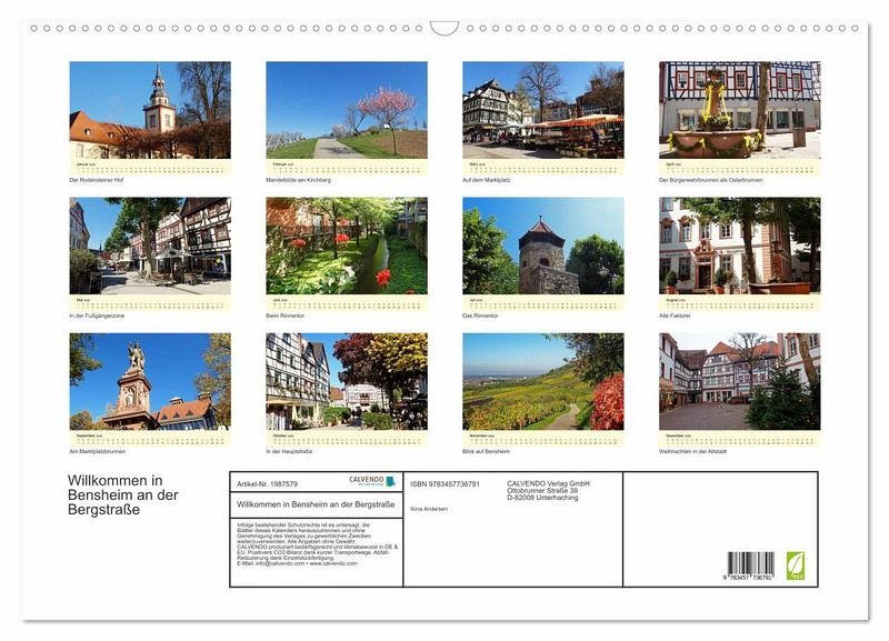 QUALITÄT - Hochwertiger Fotokalender mit 12 wunderschönen Motiven auf lichtbeständigem Bilderdruckpapier, robuste Spiralbindung mit Aufhängebügel.NACHHALTIG - deutliche Abfallreduzierung durch bedarfsgerechte Einzelstückfertigung, umweltfreundliches FSC-zertifiziertes Papier, Produktion in Deutschland, klimabewusste Logistik.PERFEKTES GESCHENK - Kalender für Freunde und Familie, für Kinder und Erwachsene, jung und alt, zu Weihnachten, Geburtstag oder zwischendurch.VIELFALT - Bildkalender in verschiedenen Formaten, z.B. DIN A5, DIN A4, DIN A3 sowie DIN A2. Ob Naturmotiv, Gemälde oder Fotos, ideal für ein persönliches Wohlfühlambiente.Bensheim als größte Stadt des Kreises Bergstraße bietet Geschichte, viele alte historische Fachwerkhäuser und gemütliche Gastlichkeit von Autor(in): Ilona Andersen