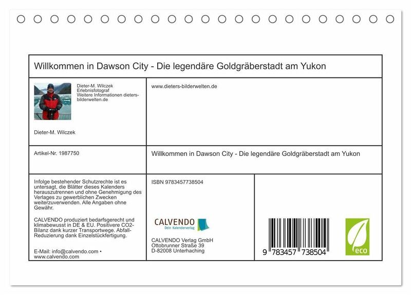 QUALITÄT - Hochwertiger Fotokalender mit 12 wunderschönen Motiven auf lichtbeständigem Bilderdruckpapier, robuste Spiralbindung.NACHHALTIG - deutliche Abfallreduzierung durch bedarfsgerechte Einzelstückfertigung, umweltfreundliches FSC-zertifiziertes Papier, Produktion in Deutschland, klimabewusste Logistik.PERFEKTES GESCHENK - Kalender für Freunde und Familie, für Kinder und Erwachsene, jung und alt, zu Weihnachten, Geburtstag oder zwischendurch.VIELFALT - Bildkalender in verschiedenen Formaten, z.B. DIN A5, DIN A4, DIN A3 sowie DIN A2. Ob Naturmotiv, Gemälde oder Fotos, ideal für ein persönliches Wohlfühlambiente.Ein Besuch der historischen Kleinstadt mitten in der kanadischen Wildnis ist ein besonderes Erlebnis von Autor(in): Dieter Wilczek