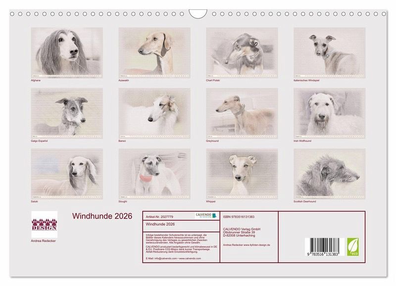 QUALITÄT -Hochwertiger Fotokalender mit 12 wunderschönen Motiven auf lichtbeständigem Bilderdruckpapier, robuste Spiralbindung mit Aufhängebügel.NACHHALTIG - deutliche Abfallreduzierung durch bedarfsgerechte Einzelstückfertigung, umweltfreundliches FSC-zertifiziertes Papier, Produktion in Deutschland, klimabewusste Logistik.PERFEKTES GESCHENK - Kalender für Freunde und Familie, für Kinder und Erwachsene, jung und alt, zu Weihnachten, Geburtstag oder zwischendurch.VIELFALT - Bildkalender in verschiedenen Formaten, z.B. DIN A5, DIN A4, DIN A3 sowie DIN A2. Ob Naturmotiv, Gemälde oder Fotos, ideal für ein persönliches Wohlfühlambiente.Windhunde - Wunderschön gestalteter Kalender. Jedes Monatsmotiv gleicht einem kleinen Kunstwerk. von Autor(in): Andrea Redecker