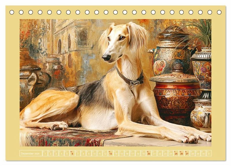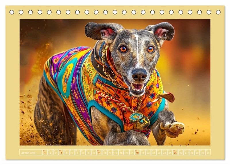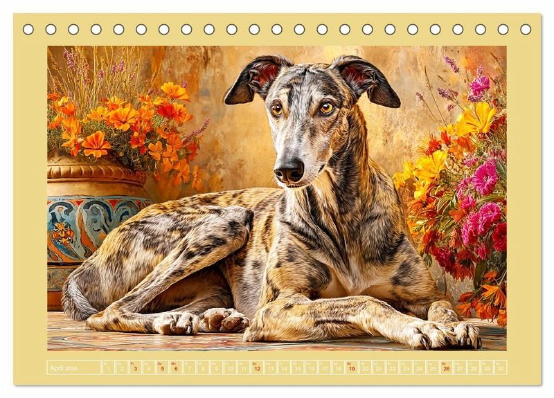Dieser Kalender zeigt wunderschöne Bilder von edlen und würdevollen Windhunden. Die Illustrationen vereinen Geschwindigkeit und Stille, Ausdruck und Anmut, eingefangen in natürlichen und stilvollen Umgebungen. Ob laufend durch Felder oder ruhend im Licht - jeder Monat wurde mit der Hilfe von KI erstellt und erzählt eine kleine Geschichte über die feinsinnige Seele der Galgos Salukis und Co. Ein Projekt für Liebhaber von Ästhetik, Tierliebe und visueller Poesie.