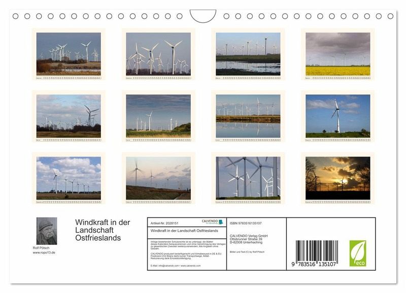 QUALITÄT - Hochwertiger Fotokalender mit 12 wunderschönen Motiven auf lichtbeständigem Bilderdruckpapier, robuste Spiralbindung mit Aufhängebügel.NACHHALTIG - deutliche Abfallreduzierung durch bedarfsgerechte Einzelstückfertigung, umweltfreundliches FSC-zertifiziertes Papier, Produktion in Deutschland, klimabewusste Logistik.PERFEKTES GESCHENK - Kalender für Freunde und Familie, für Kinder und Erwachsene, jung und alt, zu Weihnachten, Geburtstag oder zwischendurch.VIELFALT - Bildkalender in verschiedenen Formaten, z.B. DIN A5, DIN A4, DIN A3 sowie DIN A2. Ob Naturmotiv, Gemälde oder Fotos, ideal für ein persönliches Wohlfühlambiente.Der Fotograf Rolf Pötsch zeigt hier in dreizehn großartigen Fotos die Windkraftanlagen in der ostfriesischen Landschaft. von Autor(in): ropo13