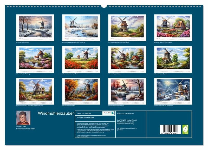 PREMIUM-LINIE - Brillanter Fotokalender mit 12 wunderschönen Motiven, Kunstdruck in Hochglanz in Museumsqualität.QUALITÄT - edle Materialien, stabile Rückwand mit 2 innovativen Einstecktaschen für eine optimale Präsentation an der Wand.NACHHALTIG - deutliche Abfallreduzierung durch bedarfsgerechte Einzelstückfertigung, umweltfreundliches FSC-zertifiziertes Papier, Produktion in Deutschland, klimabewusste Logistik.PERFEKTES GESCHENK - Kalender für Freunde und Familie, für Kinder und Erwachsene, jung und alt, zu Weihnachten, Geburtstag oder zwischendurch.Märchenhafte KI-Bilder alter Windmühlen und Zitate begleiten durchs Jahr von Autor(in): Sabine Löwer