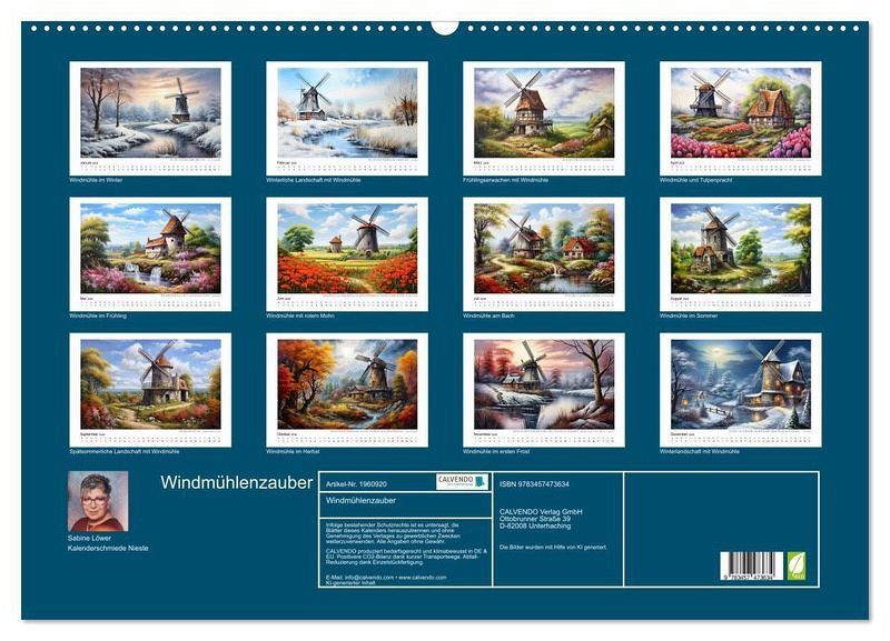 QUALITÄT - Hochwertiger Fotokalender mit 12 wunderschönen Motiven auf lichtbeständigem Bilderdruckpapier, robuste Spiralbindung mit Aufhängebügel.NACHHALTIG - deutliche Abfallreduzierung durch bedarfsgerechte Einzelstückfertigung, umweltfreundliches FSC-zertifiziertes Papier, Produktion in Deutschland, klimabewusste Logistik.PERFEKTES GESCHENK - Kalender für Freunde und Familie, für Kinder und Erwachsene, jung und alt, zu Weihnachten, Geburtstag oder zwischendurch.VIELFALT - Bildkalender in verschiedenen Formaten, z.B. DIN A5, DIN A4, DIN A3 sowie DIN A2. Ob Naturmotiv, Gemälde oder Fotos, ideal für ein persönliches Wohlfühlambiente.Märchenhafte KI-Bilder alter Windmühlen und Zitate begleiten durchs Jahr von Autor(in): Sabine Löwer