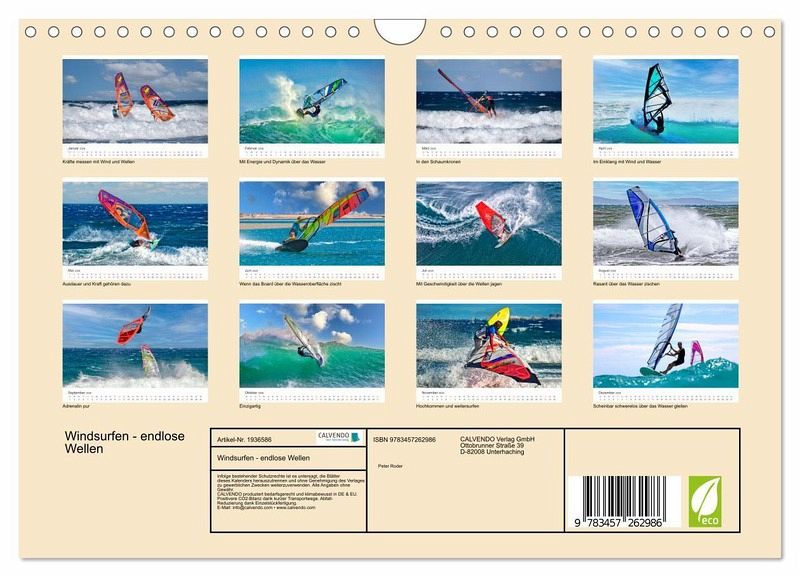 QUALITÄT - Hochwertiger Fotokalender mit 12 wunderschönen Motiven auf lichtbeständigem Bilderdruckpapier, robuste Spiralbindung mit Aufhängebügel.NACHHALTIG - deutliche Abfallreduzierung durch bedarfsgerechte Einzelstückfertigung, umweltfreundliches FSC-zertifiziertes Papier, Produktion in Deutschland, klimabewusste Logistik.PERFEKTES GESCHENK - Kalender für Freunde und Familie, für Kinder und Erwachsene, jung und alt, zu Weihnachten, Geburtstag oder zwischendurch.VIELFALT - Bildkalender in verschiedenen Formaten, z.B. DIN A5, DIN A4, DIN A3 sowie DIN A2. Ob Naturmotiv, Gemälde oder Fotos, ideal für ein persönliches Wohlfühlambiente.Dieser Sport - die perfekte Synthese von Wind und Meer. von Autor(in): Peter Roder