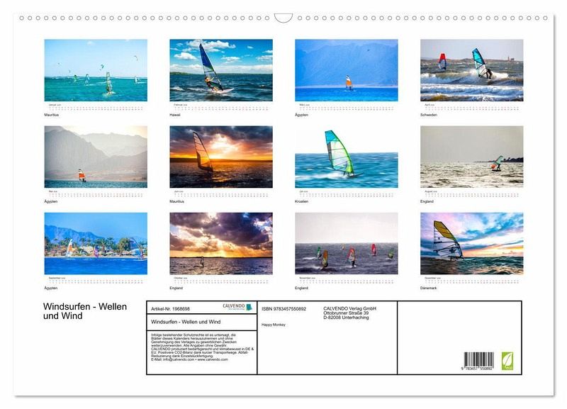 QUALITÄT - Hochwertiger Fotokalender mit 12 wunderschönen Motiven auf lichtbeständigem Bilderdruckpapier, robuste Spiralbindung mit Aufhängebügel.NACHHALTIG - deutliche Abfallreduzierung durch bedarfsgerechte Einzelstückfertigung, umweltfreundliches FSC-zertifiziertes Papier, Produktion in Deutschland, klimabewusste Logistik.PERFEKTES GESCHENK - Kalender für Freunde und Familie, für Kinder und Erwachsene, jung und alt, zu Weihnachten, Geburtstag oder zwischendurch.VIELFALT - Bildkalender in verschiedenen Formaten, z.B. DIN A5, DIN A4, DIN A3 sowie DIN A2. Ob Naturmotiv, Gemälde oder Fotos, ideal für ein persönliches Wohlfühlambiente.Mehr Wind als Welle. von Autor(in): Happy Monkey