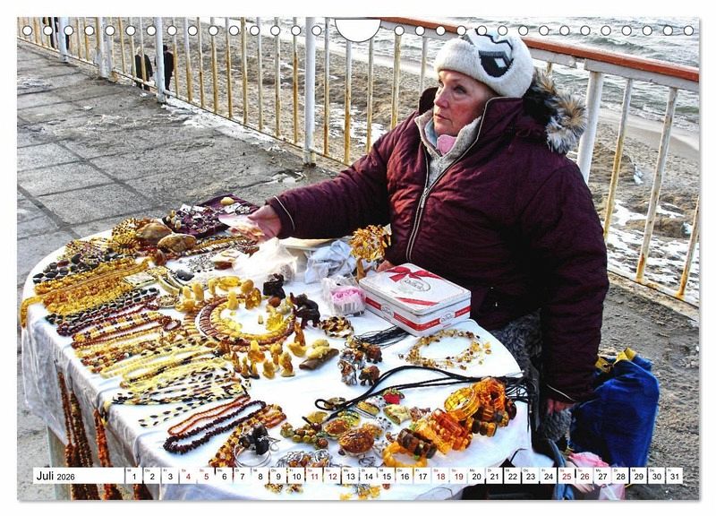 Juli: Bernsteinhändlerin auf der Promenade in Rauschen