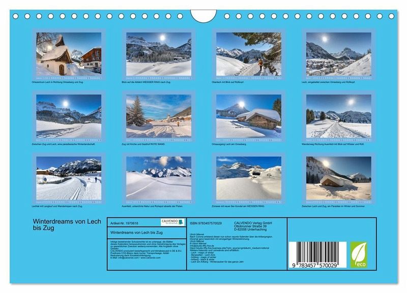 Lech als "Best of the Alps" bezeichnet, lockt seit über einem Jahrhundert Wintersportler und Urlauber aus aller Welt für fünf Monate zum Arlberg. Vom hochalpinen Tiefschneefahren bis zum Wandern in traumhafter Winterlandschaft, ist Genuss am Berg und im Schnee für alle garantiert. Der traumhafte Blick auf das AUENFELD und die RUHE im Zuger-TAL waren Anstoß für diesen neuen Kalender.